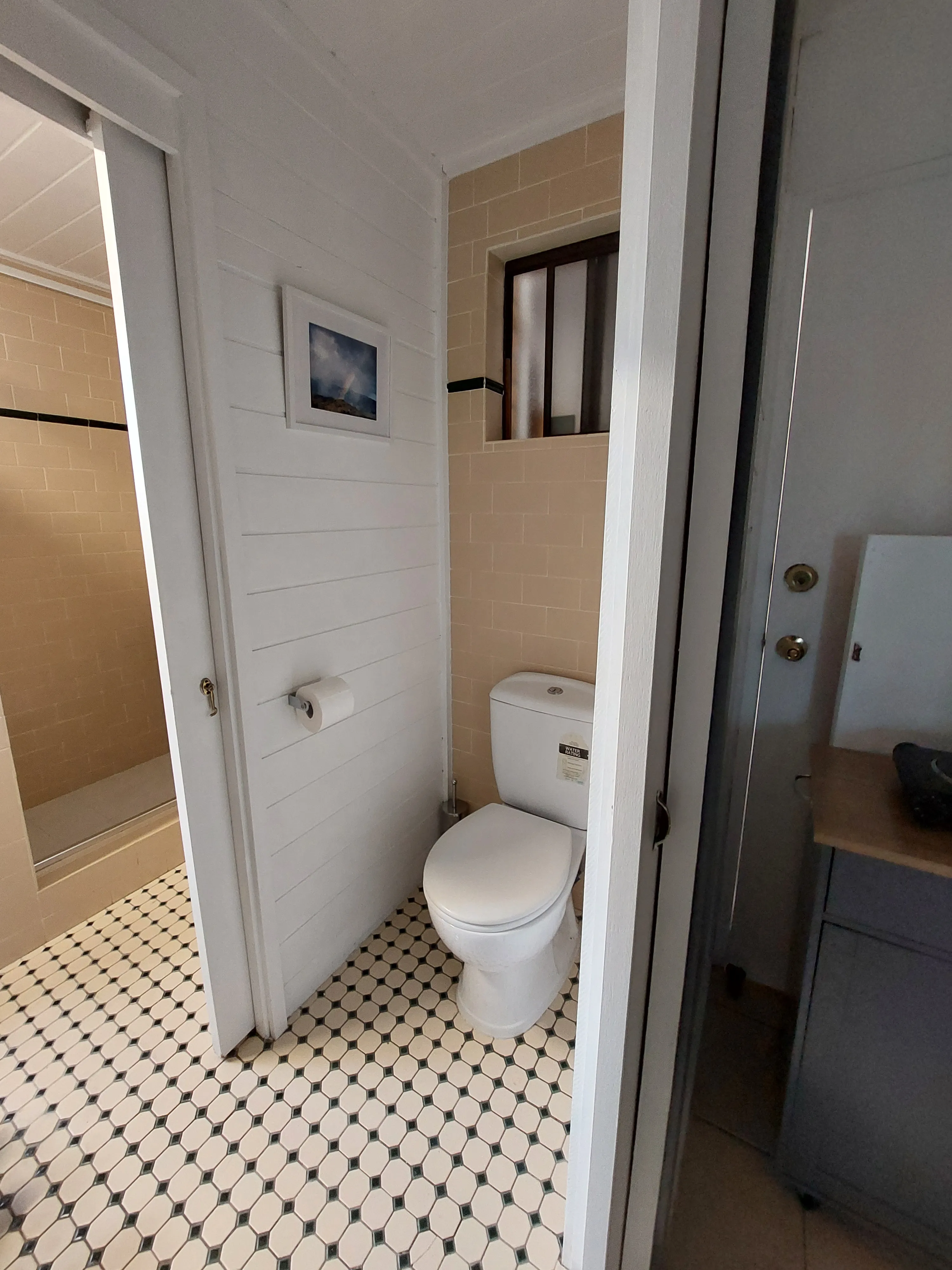 Two spacious private bedrooms, with a full-sized double bed, comfy new mattress and full built-in cupboards.